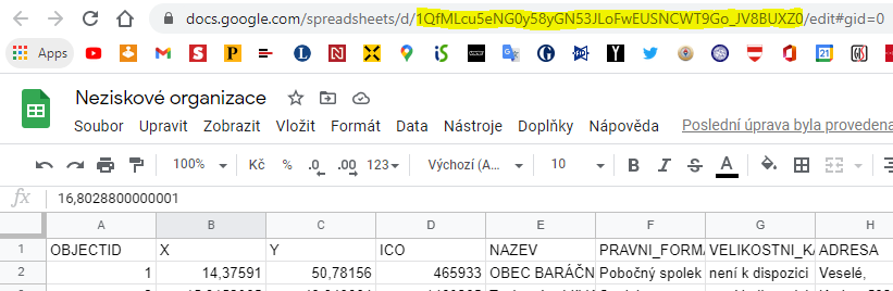 Pro další práci jsou důležité 3 řádky - 9, 19 a 21. Začneme tedy řádkem číslo 9. Zde stačí vyměnit url adresu za adresu, na které je ke stažení CSV distribuce vaší datové sady. V případě, že máte jiný formát než CSV, bude nutné skript upravit nahrazením výrazu read_csv také v řádku 10. Seznam možností a podrobný návod najdete například zde. V našem případě načítáme data z NKOD, konkrétně z datové sady Neziskové organizace v ČR a její distribuce v CSV. Formát CSV jsme zvolili z důvodu jednoduché manipulace a širokého využívání veřejností.
